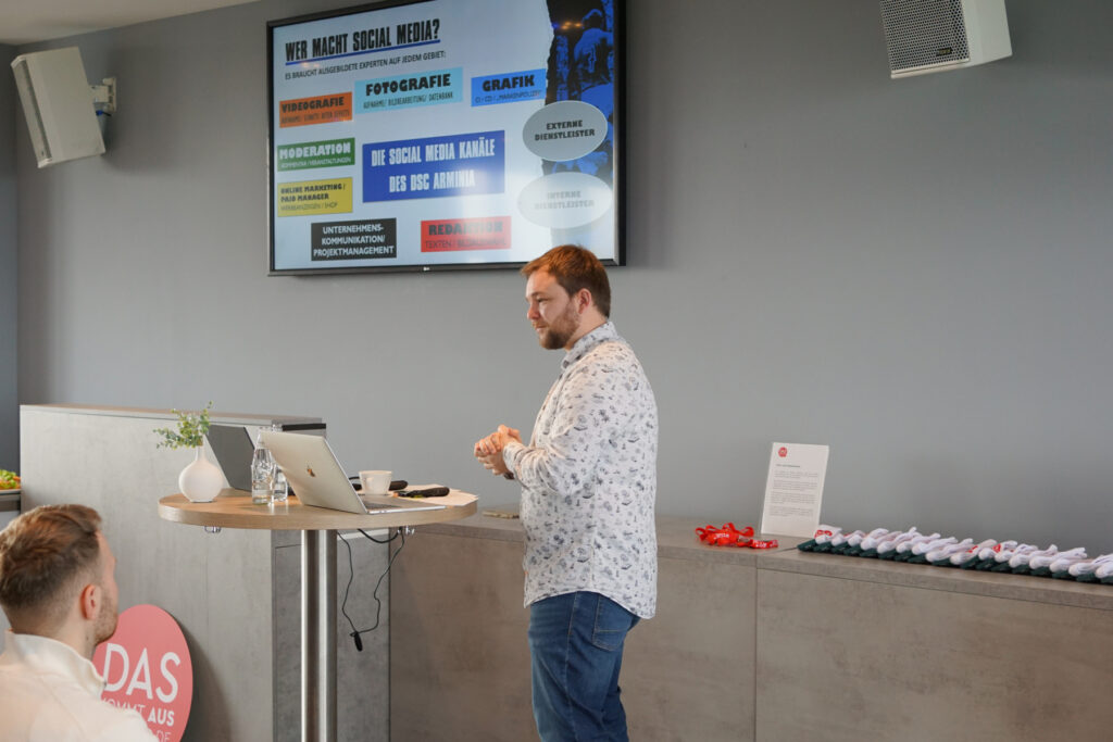 Impulsgeber war Christian Roselius, Koordinator Neue Medien bei Arminia Bielefeld. Er zeigte, wie Content zum Markenmotor wird, welche Prozesse dahinterstecken und wie sich die Strategie durch die Erfolge weiterentwickelt hat.