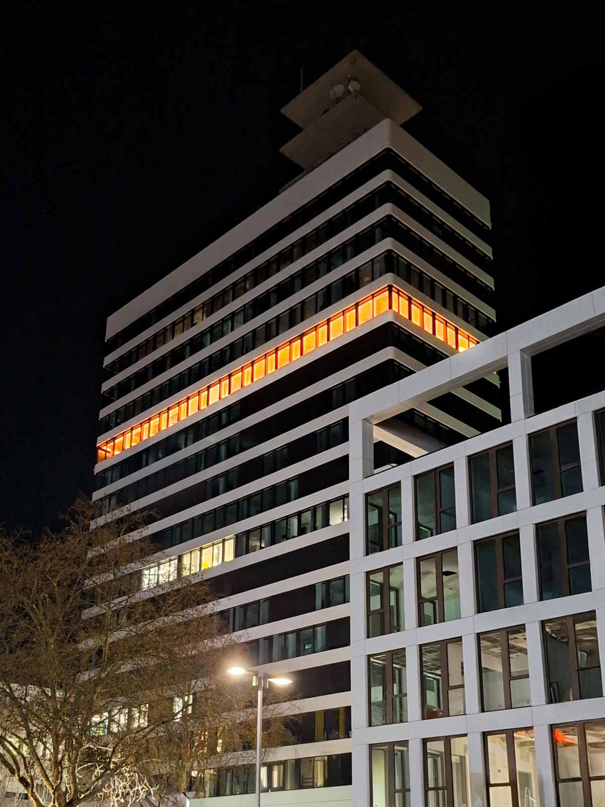 Als Zeichen des Umzugs erstrahlen die Räume von Piening in der Vorweihnachtszeit in den Abendstunden in der Unternehmensfarbe Orange. So finden Jobsuchende schnell und einfach die besten Stellen in der Stadt.